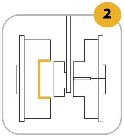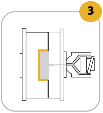 El molde se cierra y se inyecta el plástico.